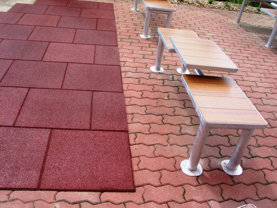 | Bojājumu novēršana: | Bez grūtībām ispējams nomainīt bojātu gumijas flīzi pret jaunu, nav vajadzība demontēt visu laukumu. |