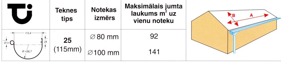 Šī ir pusapaļo tekņu sistēma, kuras izmēri un tehniskie parametri nodrošina optimālu lietus ūdens savākšanu un novadīšanu  no privātmāju un  citu ēku jumtiem, kuru kopējais laukums uz vienu noteku komlektā ar  80 mm noteku nepārsniedz 92m2, komplektā ar 100mm noteku- 141m2.